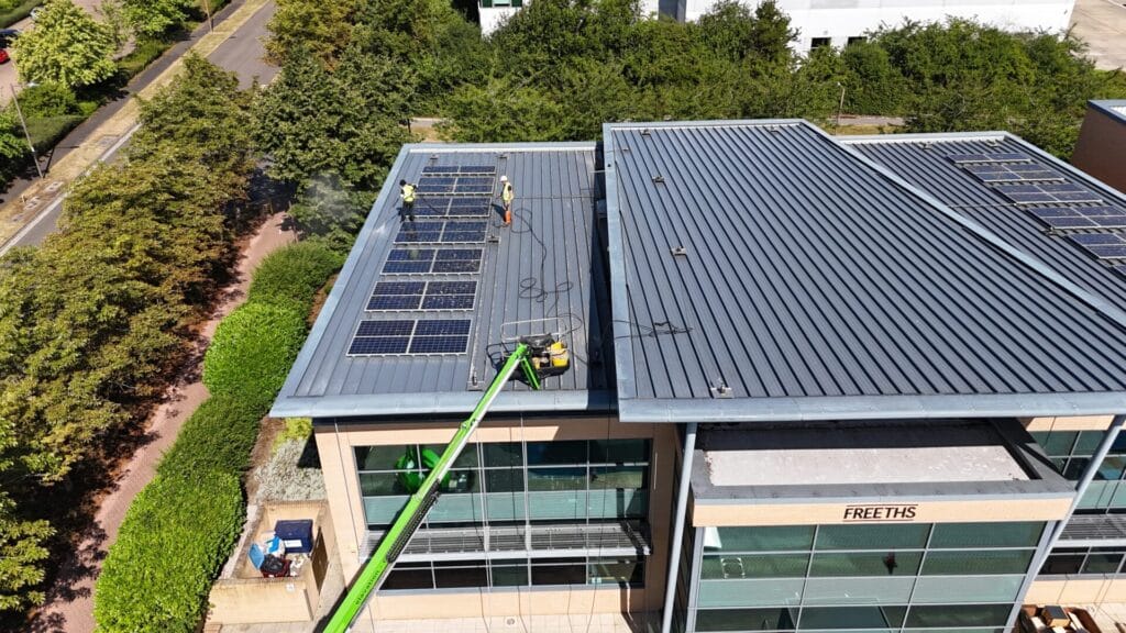 Encanto were appointed by Freeths to carry out a professional roof cleaning service at their Milton Keynes office building. With the property forming part of a modern commercial site, maintaining a clean and well-presented exterior was important for both appearance and long-term upkeep. Our team planned the work to ensure safe access and minimal disruption, delivering a thorough clean across key roof areas.